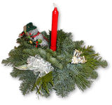 pine, and pine cones. Decorated with snowmen or santa and a holiday